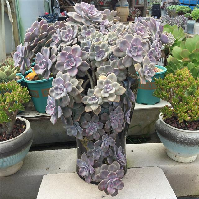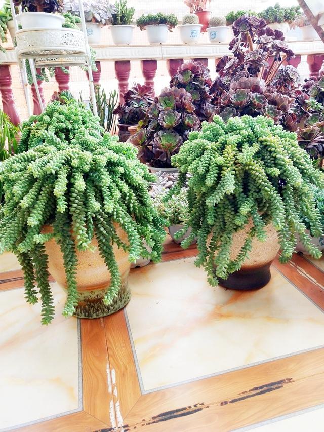 这也是只有在南方花友四季如春的地方才可以办到的,因为,如果是北方地区,冬天直接都给冻死了,咋也不能让它垂在阳台变成瀑布啊,只能养些不占地方的多肉,不过养成老桩也是非常珍贵的。