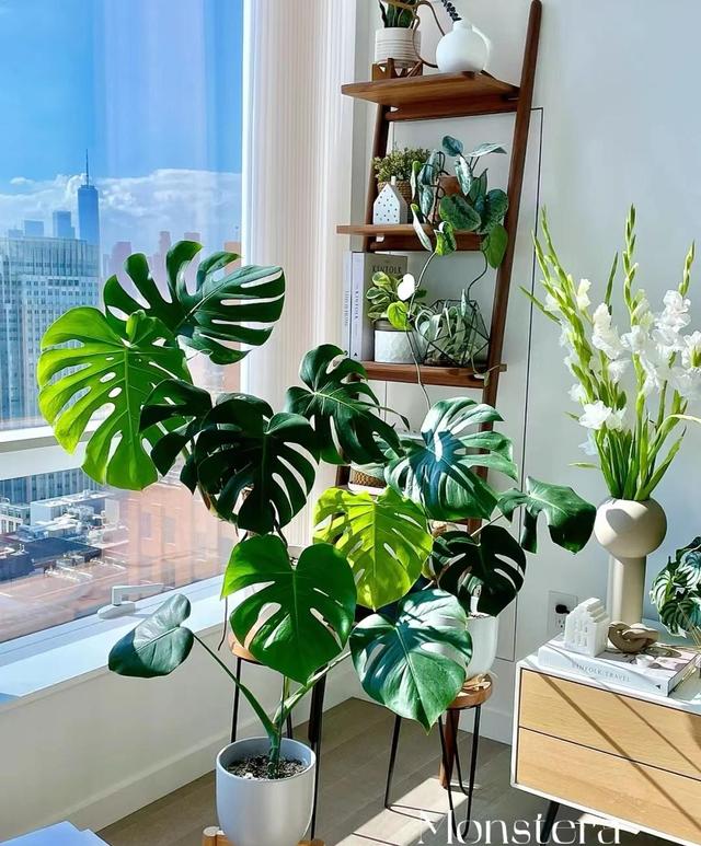 一株龟背竹对甲醛的吸附量可以相当于十袋叶碳纤维的吸附量,很多人喜欢在家里养龟背竹,不仅好看,而且净化空气能力超强,它适合放在室内养护,半阴的地方就可以养的很棒。