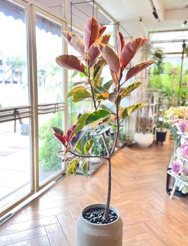 橡皮树的叶片肥大、宽厚、革质,像涂了一层油一般,油光锃亮,而且株型漂亮雅致。往客厅里一放,高档大气,净化空气,是很多人喜欢的盆栽植物,它可以净化空气中的甲醛、一氧化碳等有害气体,把所有的有害气体吸附在表面。