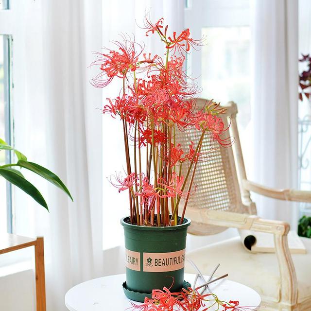 这种彼岸花在家中养的是比较少的。不忌讳这种说法的朋友在家里养彼岸花,开花时间不见叶,见叶不开花,也是非常漂亮的。但是如果家里养了,一定要注意不要去轻易的采摘,不要去轻易的触碰它的汁液,它不仅寓意不好,而且还是有毒性的呢。