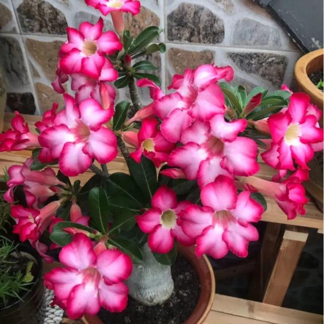 沙漠玫瑰生长在热带的戈壁地区干旱少雨的地方,平时养沙漠玫瑰,需要光照充足,干旱的时候才可以养得很棒。冬天温度特别低,沙漠玫瑰非常怕冻,要拿到室内去保温,并且保持光照,浇水一定要控制,盆土干了透透的再去浇水就可以了。如果室内温度过高,也要给它控养,因为光照跟不上,它容易出现枝条徒长,株型难看,不开花的情况。