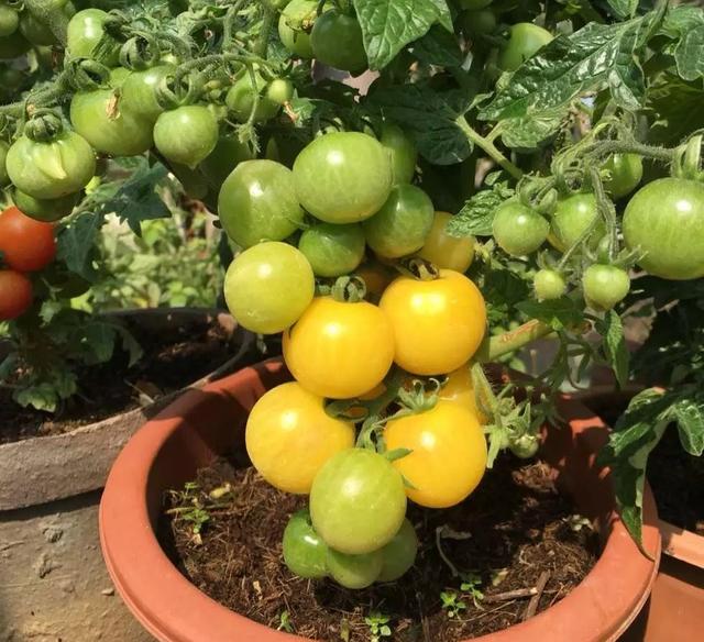 如果阳台地方不大,一定要选择一些矮品种的西红柿,比如矮生的盆栽小番茄,非常适合在花盆里种植,它的个头不大,也就三四十厘米,但是特别能挂果,产量非常高,而且结果密密实实果实非常紧凑,小番茄会密密麻麻挂满整个植株,一盆能接好几十个,晶莹剔透得特别好看。