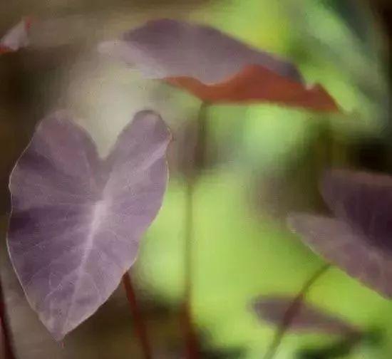 紫海芋比较稀少的滴水观音,叶片是紫色的,在树干上会结出一圈紫色的珍珠状物体,大家也叫它珍珠海芋。