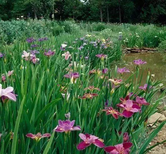 四季常绿路易斯安娜鸢尾水生鸢尾。果实大,不结籽。宿根、块茎。整株高1米左右。路易斯安娜鸢尾是鸢尾科鸢尾属多年生常绿草本植物,耐湿也耐干旱,但湿地生长明显比旱地生长良好,在水深30~40厘米水域发育健壮。冬季生长停止,但叶仍保持翠绿。
