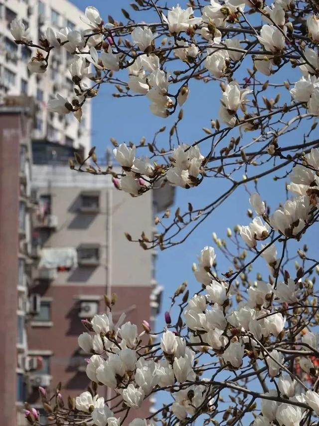大地春回,春日暖阳下,徐汇的玉兰花已竞相开放,皎洁而无瑕,温婉而美丽,绰约花姿吸引着过往行人的目光,一树一树玉兰花熙熙攘攘地绽放在蓝天的背景上,沐浴在明媚的春光里。