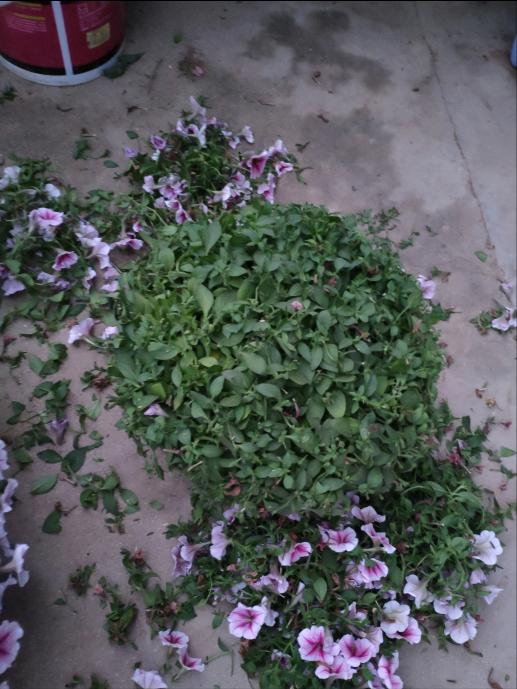 矮牵牛的花量非常大,非常容易爆成花球。矮牵牛开完花之后,你也要舍得给它剃头修剪,把过长的枝条都剪掉,可以保留花盆边缘的长度,保留得太长了,株型比较松散,开出花来也不好看,而且底部容易黄叶。